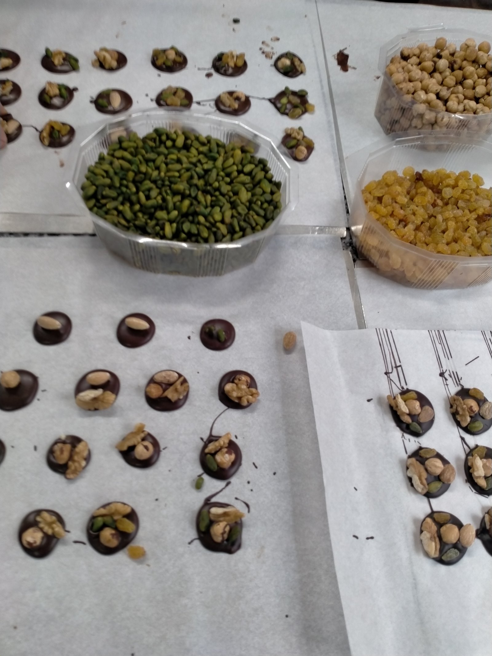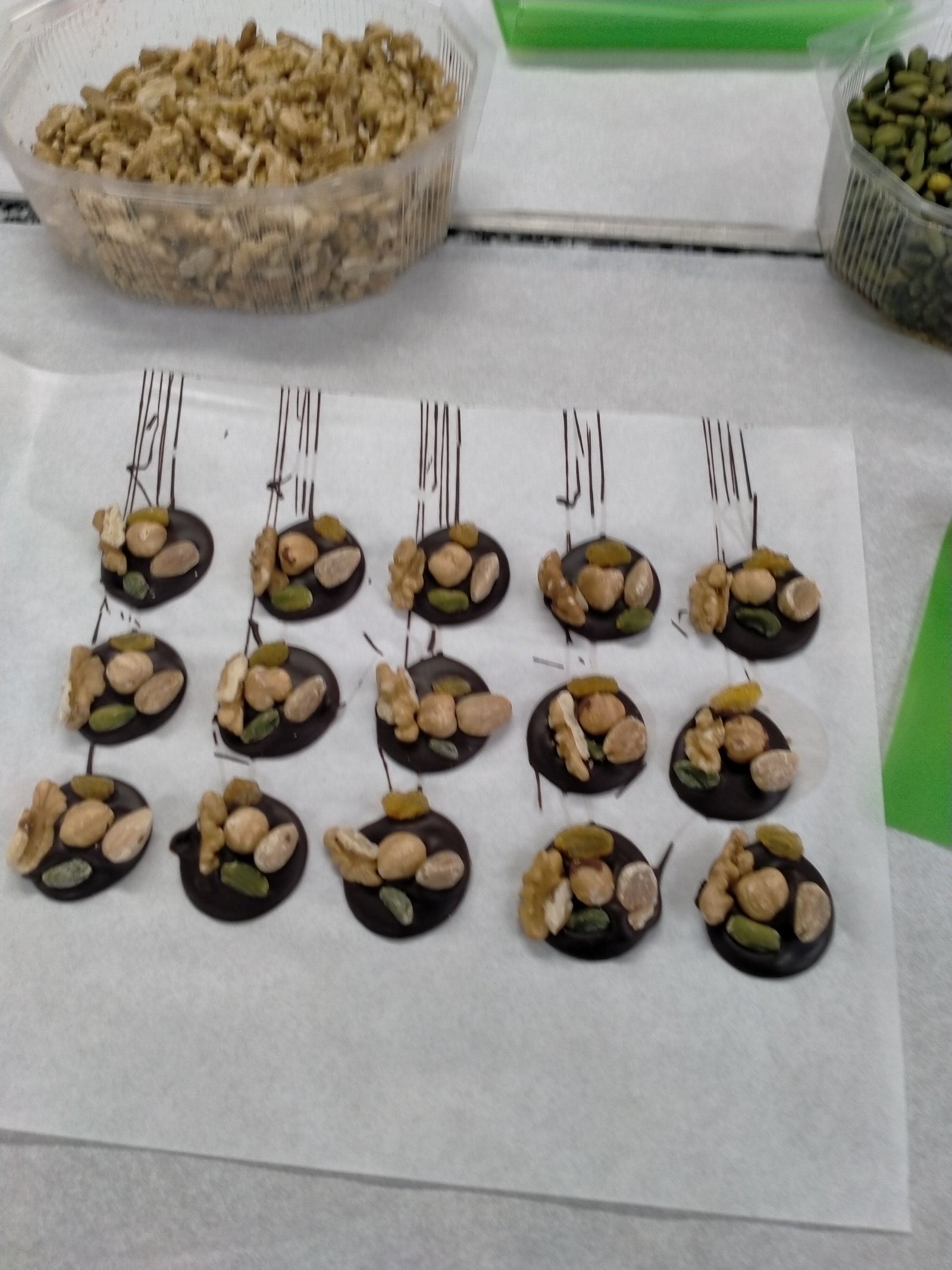 chocolatées emportant avec nous à la sortie, le sachet de mendiants et florentins, fruit de notre